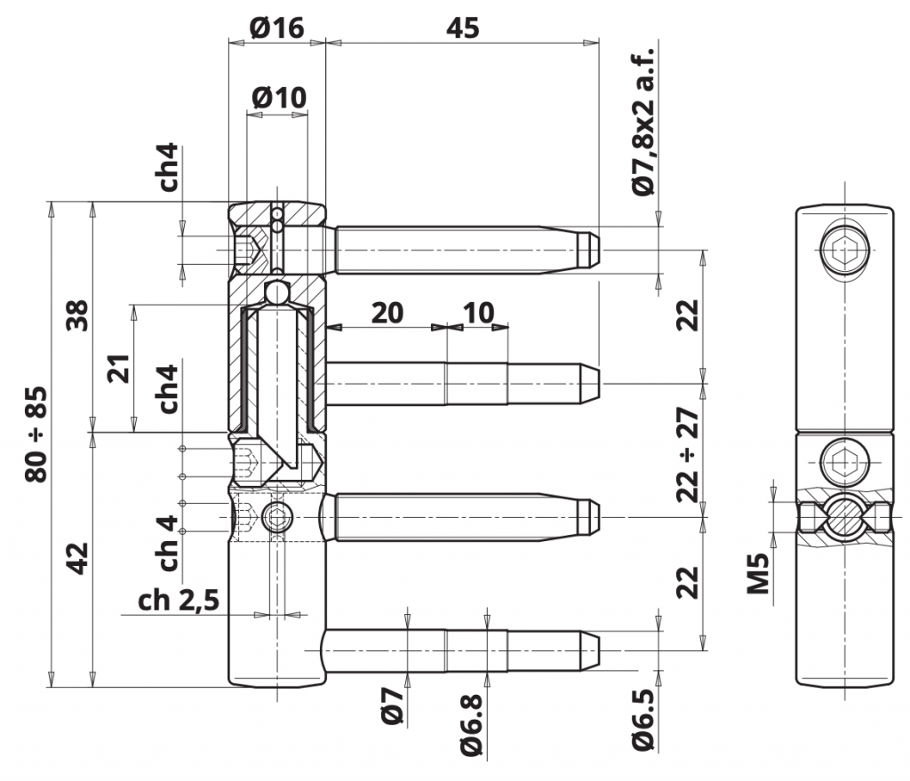 Monipuolisesti säädettävä nostosarana sisä- ja ulko-oviin. Valmistettu Italiassa.