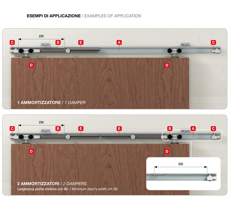 Seinäkiinnityksessä oven paksuus vakiokannattimilla on enintään 25mm.